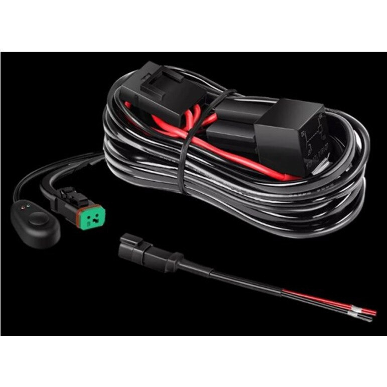 Cablaj cu buton si releu pentru pornirea/oprirea a unuia sau a mai multor proiectoare/led bar cu puterea totala insumata de maxim 288w 24V Lungime: 3m Putere maxima: 30A Contine mufa mama+mufa tata
