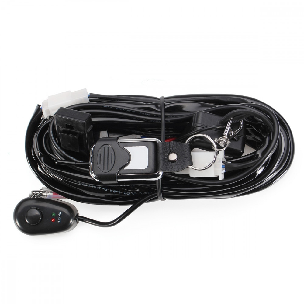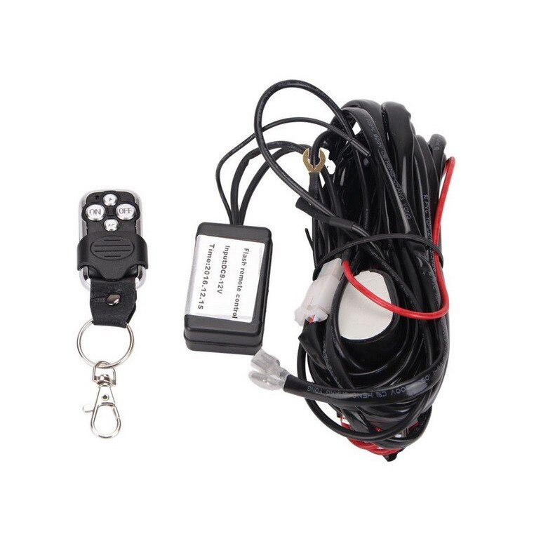 Cablaj wireless cu buton, telecomanda, releu si siguranta pentru pornirea/oprirea a unuia sau a mai multor proiectoare/led bar cu puterea totala insumata de maxim 288w 24 moduri de iluminare Bateria telecomenzii nu este inclusa in pachet. Lungime: 3m Putere maxima: 288W
