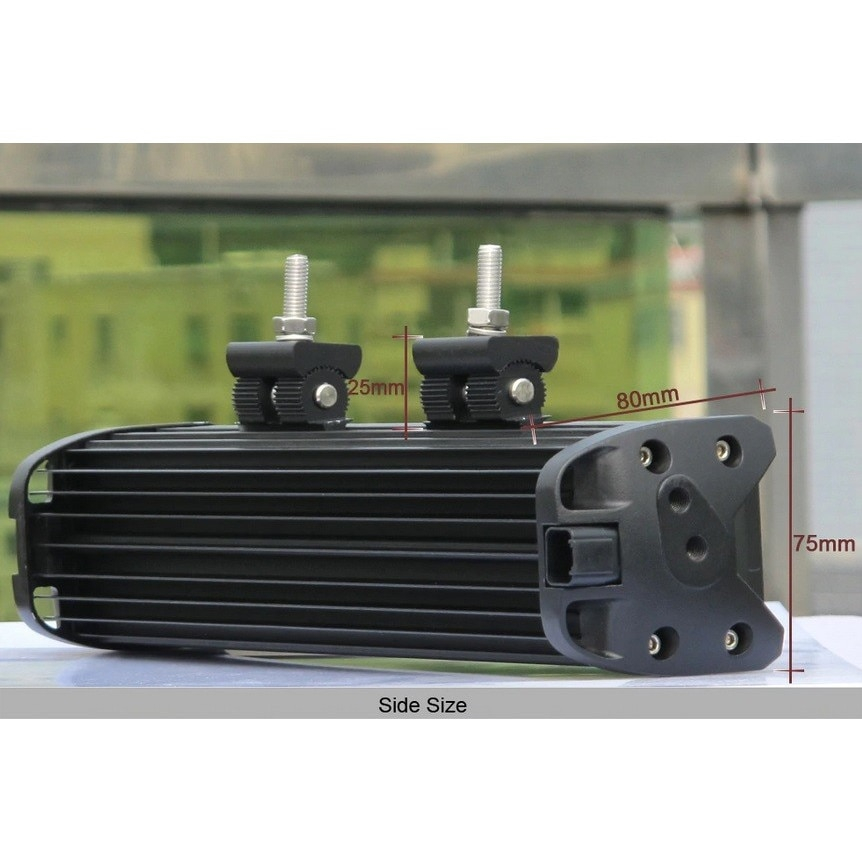 Bara LED Auto Offroad 60W 6D 12V-24V, 6480 Lumeni, 15"/37 cm Specificatii produs: Putere: 60W Luminozitate: 64800 lumeni Numar leduri: 24 CREE LED Tensiunea de lucru: 10-30V Clasa protectie: IP 67 Temperatura culoare lumina: 6000K Material: Aliaj Aluminiu Culoare corp: Negru Material lentila: Policarbonat (rezistenta mare la socuri mecanice si termorezistenta) Bracketi montaj: Duraluminiu Unghi lumina: 120 grade Lungime: 15 inch (cca 37 cm) Durata de viata: > 30.000 ore Descriere produs: Proiector LED auto pentru Off Road, vanatoare, pescuit, utilaje etc pentru utilizare la autoturisme, utilaje, camioane, ambarcatiuni Gama larga de utilizar: autoturisme, utilaje, camioane, ambarcatiuni si alte. Diferite dimensiuni pentru instalare in diverse locuri Durata de viata foarte mare, de peste 30.000 de ore de functionare Carcasa din duraluminiu rezistenta la socuri Protectie la apa si anticoroziune: poate fi utilizat in ploaie si in medii grele de lucru (praf, noroi etc) Unghi lumina: Combo - combina tipul spot cu tipul flood. Pe laterale are leduri tip flood cu unghiul de 60 grade, iar central leduri tip spot cu unghiul de 12 grade (vezi fotografia suplimentara a produsului)