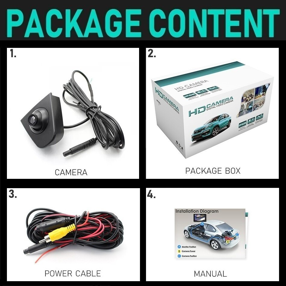 Camera frontala dedicata Honda cu montaj in sigla Montarea se face in sigla frontala, realizand o integrare OEM Unghi de vizualizare mare Montare fara gaurire Compatibila doar cu unitatile aftermarket care au intrare video cu conector RCA. Nu este compatibila cu unitati care au intrarea pentru camera cu pini, va rugam sa verificati cu atentie unitatea masinii inainte de a comanda. *Inainte de a comanda produsul verificati cu atentie daca sigla masinii are dimensiunile camerei Caracteristici 1. Unghi de vizualizare de 150 grade 2. Carcasa rezistenta la socuri 3. Complet rezistenta la apa (Clasa protectie IP68) 4. Instalare simpla Specificatii tehnice 1. Rezolutie: 480 TV Lines 2. Pixeli: 680x480 3. TV Sistem: NTSC 4. Vedere nocturna: Starlight Night Vision 5. Tensiune alimentare: DC 12V 6. Temperatura de lucru: -30 - +70 grade Celsius 7. Rezistenta la apa - IP68, Rezistenta la socuri Continut pachet 1. Camera frontala dedicata pentru sigla masinii 2. Cablu video RCA cu lungime de 6 metri 3. Cablu de alimentare