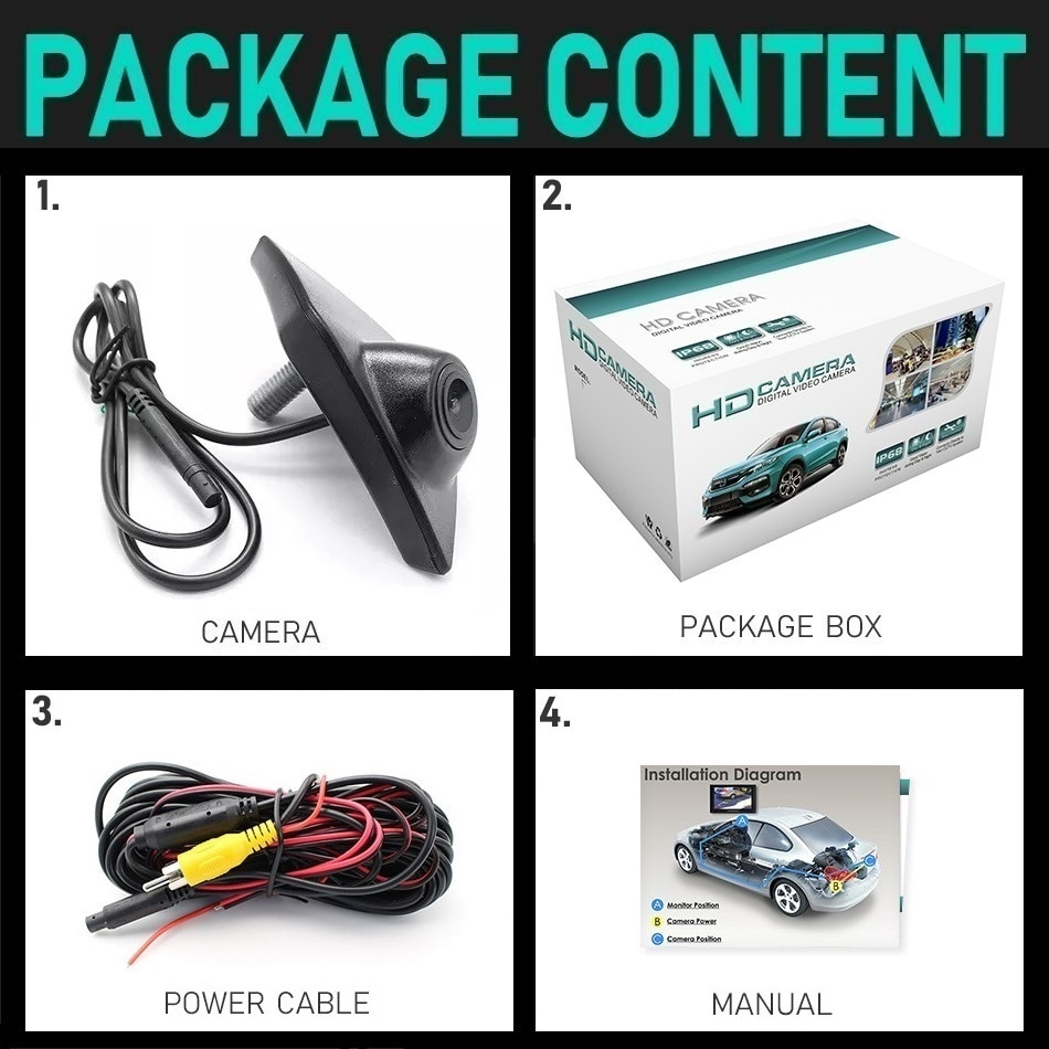 Camera frontala dedicata Renault cu montaj in sigla Montarea se face in sigla frontala, realizand o integrare OEM Unghi de vizualizare mare Montare fara gaurire Compatibila doar cu unitatile aftermarket care au intrare video cu conector RCA. Nu este compatibila cu unitati care au intrarea pentru camera cu pini, va rugam sa verificati cu atentie unitatea masinii inainte de a comanda. *Inainte de a comanda produsul verificati cu atentie daca sigla masinii are dimensiunile camerei Caracteristici 1. Unghi de vizualizare de 150 grade 2. Carcasa rezistenta la socuri 3. Complet rezistenta la apa (Clasa protectie IP68) 4. Instalare simpla Specificatii tehnice 1. Rezolutie: 480 TV Lines 2. Pixeli: 680x480 3. TV Sistem: NTSC 4. Vedere nocturna: Starlight Night Vision 5. Tensiune alimentare: DC 12V 6. Temperatura de lucru: -30 - +70 grade Celsius 7. Rezistenta la apa - IP68, Rezistenta la socuri Continut pachet 1. Camera frontala dedicata pentru sigla masinii 2. Cablu video RCA cu lungime de 6 metri 3. Cablu de alimentare