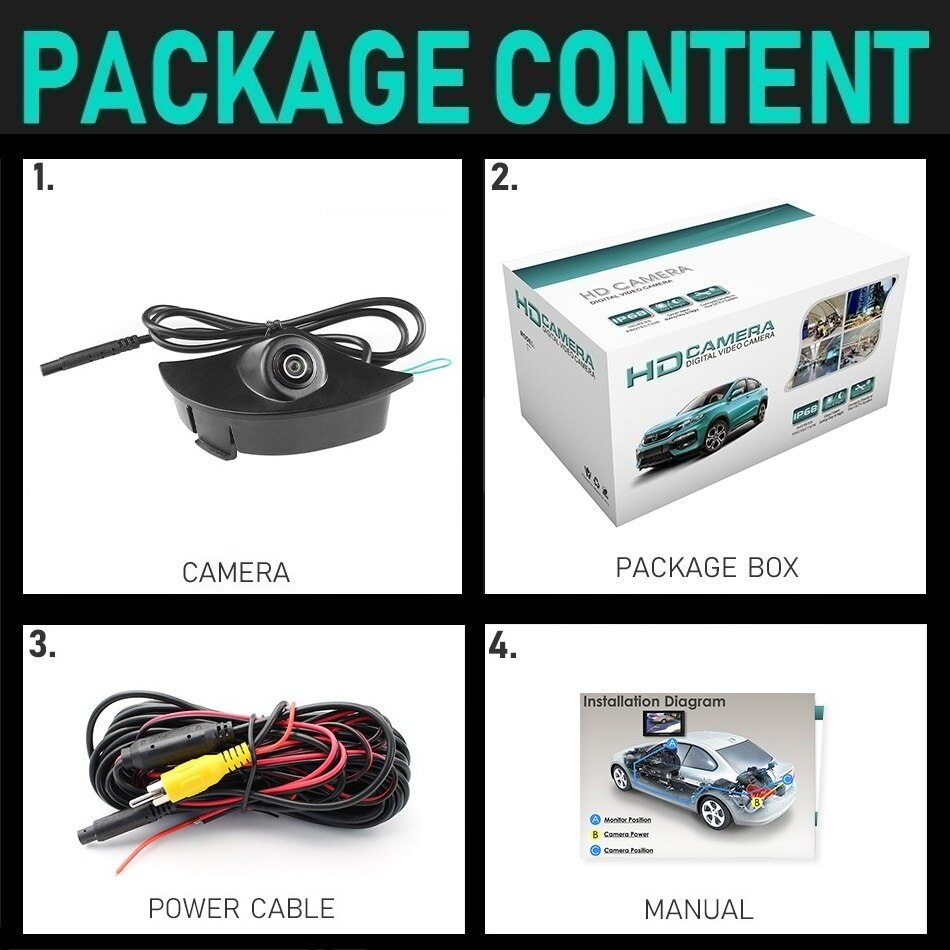 Camera frontala dedicata Toyota cu montaj in sigla Montarea se face in sigla frontala, realizand o integrare OEM Unghi de vizualizare mare Montare fara gaurire Compatibila doar cu unitatile aftermarket care au intrare video cu conector RCA. Nu este compatibila cu unitati care au intrarea pentru camera cu pini, va rugam sa verificati cu atentie unitatea masinii inainte de a comanda. *Inainte de a comanda produsul verificati cu atentie daca sigla masinii are dimensiunile camerei Caracteristici 1. Unghi de vizualizare de 150 grade 2. Carcasa rezistenta la socuri 3. Complet rezistenta la apa (Clasa protectie IP68) 4. Instalare simpla Specificatii tehnice 1. Rezolutie: 480 TV Lines 2. Pixeli: 680x480 3. TV Sistem: NTSC 4. Vedere nocturna: Starlight Night Vision 5. Tensiune alimentare: DC 12V 6. Temperatura de lucru: -30 - +70 grade Celsius 7. Rezistenta la apa - IP68, Rezistenta la socuri Continut pachet 1. Camera frontala dedicata pentru sigla masinii 2. Cablu video RCA cu lungime de 6 metri 3. Cablu de alimentare