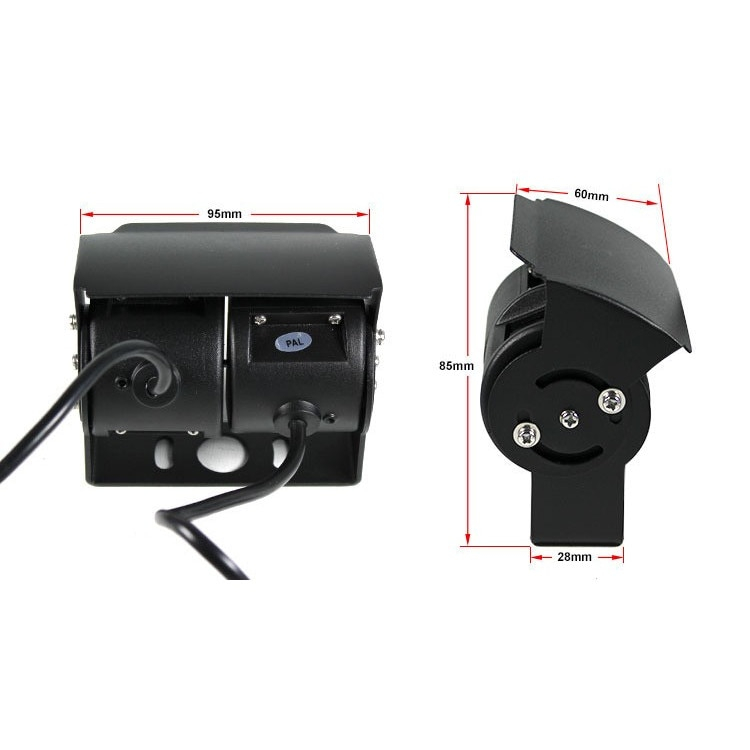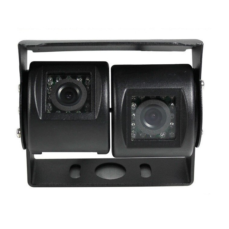 Camera marsarier duala, cu doua camere reglabile cu infrarosu 12V - 24V pentru camioane, Autoacare, Bus-uri Caracteristici 1. Night vision (Infrarosu) 2. Unghi de vizualizare de 120 grade 3. Carcasa metalica, rezistenta la socuri 4. Design mic si compact 5. Complet rezistenta la apa (Clasa protectie IP67) 6. Bracket de prindere metalic 7. Instalare simpla 8. Culoare: negru 9. Luminozitatea minima: 0 Lucsi 10. Functioneaza atat la 12V cat si la 24V Specificatii tehnice 1. TV Sistem: NTSC 2. Senzor imagine: Color CMOS 3. Pixeli: 688x488 4. Rezolutie: 420 TV Lines 5. Tensiune alimentare: DC 12V-24V 6. Temperatura de lucru: -30 - +70 grade Celsius 7. Resistenta la apa - IP67, Rezistenta la socuri Continut pachet 1. Camera marsarier dubla 2. Cablu video RCA cu lungime de 10 metri 3. Cablu de alimentare
