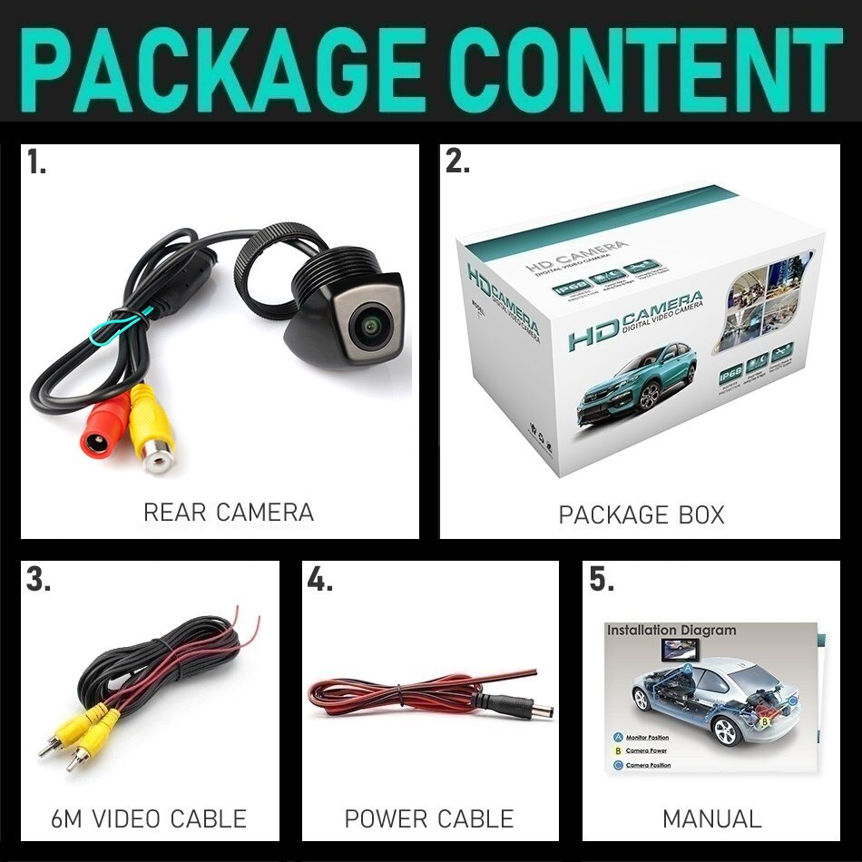 Camera marsarier HD dedicata cu Starlight Nightvision pentru BMW. Poate fi folosita ca si camera universala si pentru alte masini. Montarea se face in locul special langa lampile de numar de inmatriculare, realizand o integrare OEM Functie de vedere nocturna (Night Vision) Unghi de vizualizare mare Montare fara gaurire Compatibilitate*: BMW X5 E53, E70 (1999 - 2013) BMW X6 E71, E72 (2008 - 2013) BMW X3 E83 (2003 - 2010) Compatibila doar cu unitatile aftermarket care au intrare video cu conector RCA. Nu este compatibila cu unitati care au intrarea pentru camera cu pini, va rugam sa verificati cu atentie unitatea masinii inainte de a comanda. *Inainte de a comanda produsul verificati cu atentie daca lampa de numar a masinii dumneavoastra este identica cu suportul camerei de marsarier, pentru a evita eventuale probleme de compatibilitate Caracteristici 1. Unghi de vizualizare de 170 grade 2. Carcasa rezistenta la socuri 3. Night vision 4. Complet rezistenta la apa (Clasa protectie IP68) 5. Instalare simpla Specificatii tehnice 1. Rezolutie: HD 2. Pixeli: 1280x720P 3. TV Sistem: NTSC 4. Vedere nocturna: Starlight Night Vision 5. Tensiune alimentare: DC 12V 6. Temperatura de lucru: -30 - +70 grade Celsius 7. Rezistenta la apa - IP68, Rezistenta la socuri Continut pachet 1. Camera marsarier 2. Cablu video RCA cu lungime de 6 metri 3. Cablu de alimentare