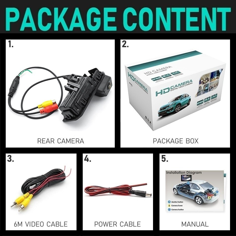 Camera maraarier HD dedicata cu Starlight Nightvision pentru Audi Q2, Q3, Q5, A5 Montarea se face in locul manerului de la portbagaj, realizand o integrare OEM Unghi de vizualizare mare Montare fara gaurire Compatibilitate*: Audi Q2 2017+ Audi Q3 2017+ Audi Q5 2017+ Audi A5 2017+ Compatibila doar cu unitatile aftermarket care au intrare video cu conector RCA. Nu este compatibila cu unitati care au intrarea pentru camera cu pini, va rugam sa verificati cu atentie unitatea masinii inainte de a comanda. Caracteristici 1. Unghi de vizualizare de 170 grade 2. Carcasa rezistenta la socuri 3. Complet rezistenta la apa (Clasa protectie IP68) 4. Instalare simpla in locul manerului de la hayon Specificatii tehnice 1. Rezolutie: HD 2. Pixeli: 1280x720P 3. TV Sistem: NTSC 4. Vedere nocturna: Starlight Night Vision 5. Tensiune alimentare: DC 12V 6. Temperatura de lucru: -30 - +70 grade Celsius 7. Rezistenta la apa - IP68, Rezistenta la socuri Continut pachet 1. Camera marsarier 2. Cablu video RCA cu lungime de 6 metri 3. Cablu de alimentare
