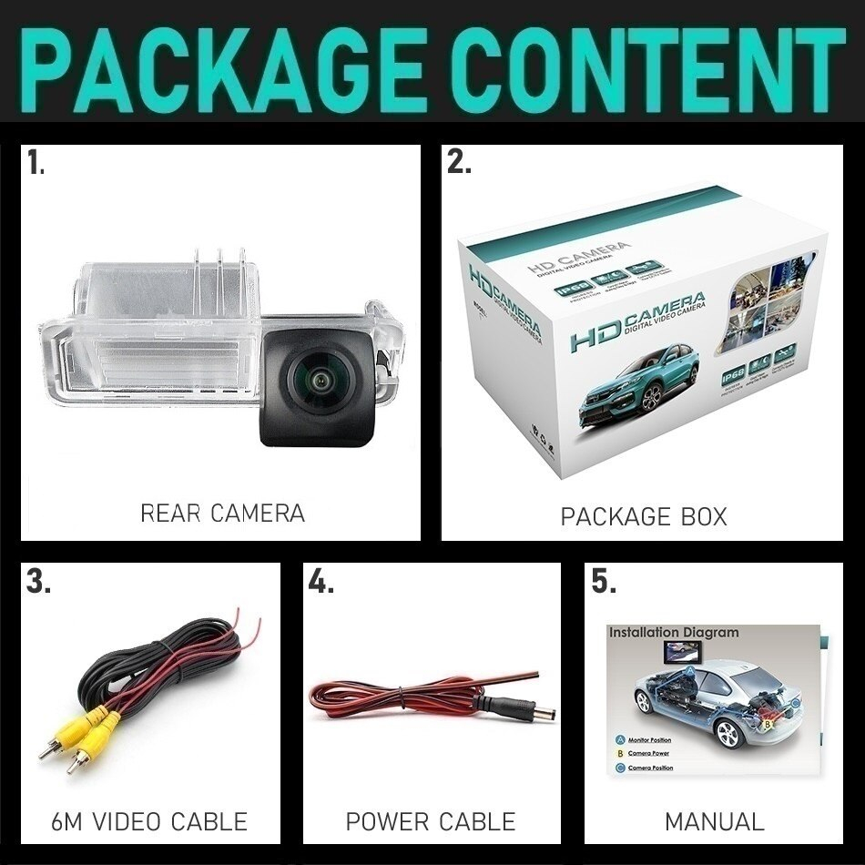 Camera marsarier HD dedicata cu Starlight Nightvision pentru Volkswagen Compatibila cu VW Golf 6, Golf 7, Passat B7, Amarok Montarea se face in locul unei lampi de numar inmatriculare, realizand o integrare OEM Functie de vedere nocturna (Night Vision) Unghi de vizualizare mare Montare fara gaurire Compatibilitate*: Golf VI hatchback (2008-2012) Golf VII hatchback (2012 - 2019) Passat B7 Sedan (2010) Amarok Compatibila doar cu unitatile aftermarket care au intrare video composite cu conector RCA. Nu este compatibila cu unitati care au intrarea pentru camera cu pini, va rugam sa verificati cu atentie unitatea masinii inainte de a comanda. *Inainte de a comanda produsul verificati cu atentie daca lampa de numar a masinii dumneavoastra este identica cu suportul camerei de marsarier, pentru a evita eventuale probleme de compatibilitate Caracteristici 1. Unghi de vizualizare de 170 grade 2. Carcasa rezistenta la socuri 3. Night vision 4. Complet rezistenta la apa (Clasa protectie IP68) 5. Instalare simpla Specificatii tehnice 1. Rezolutie: HD 2. Pixeli: 1280x720P 3. TV Sistem: NTSC 4. Vedere nocturna: Starlight Night Vision 5. Tensiune alimentare: DC 12V 6. Temperatura de lucru: -30 - +70 grade Celsius 7. Rezistenta la apa - IP68, Rezistenta la socuri Continut pachet 1. Camera marsarier 2. Cablu video RCA cu lungime de 6 metri 3. Cablu de alimentare
