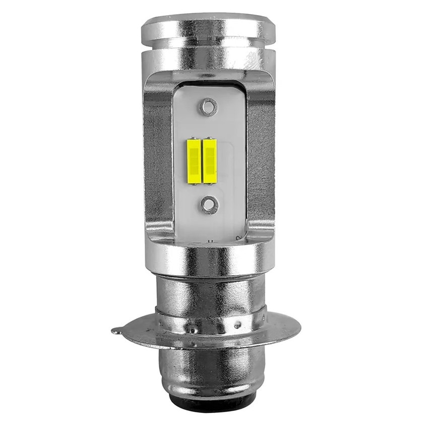 Bec LED P15D (H6M) pentru far moto, Atv, scuter, putere 10W, luminozitate 1000 Lm, 12V-24V Caracteristici: Putere: 10W Tensiune alimentare: 12V-24V Material: Aluminu Culori disponibile: Alb rece - 6000K Soclu: P15D (H6M) (faza scurta + faza lunga) Luminozitate: 1000 Lumeni