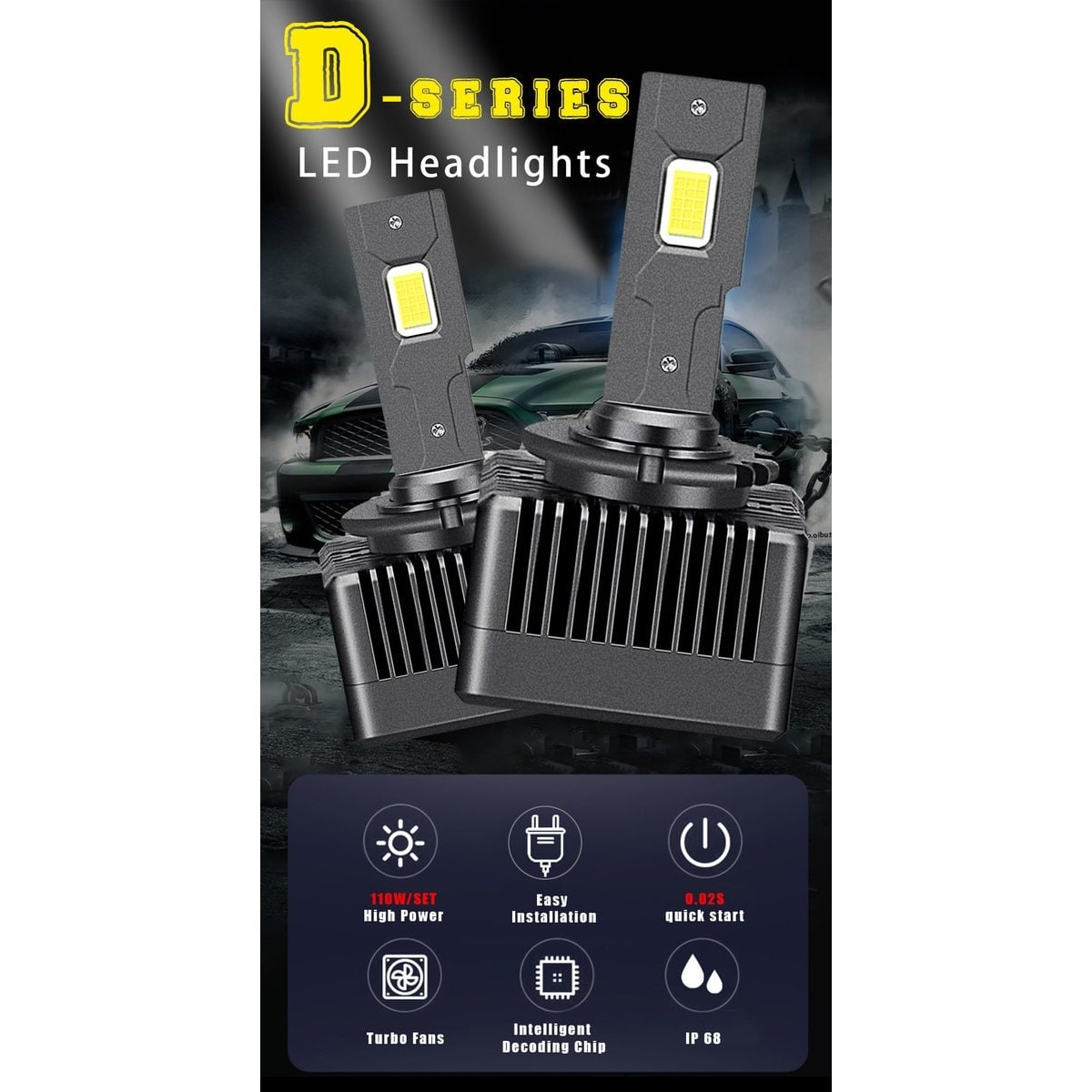 Becurile LED D1S, echipate cu cip CSP cu doua fete, ofera un fascicul de lumina mai larg si mai luminos, asigurand o vizibilitate superioara pe drum.