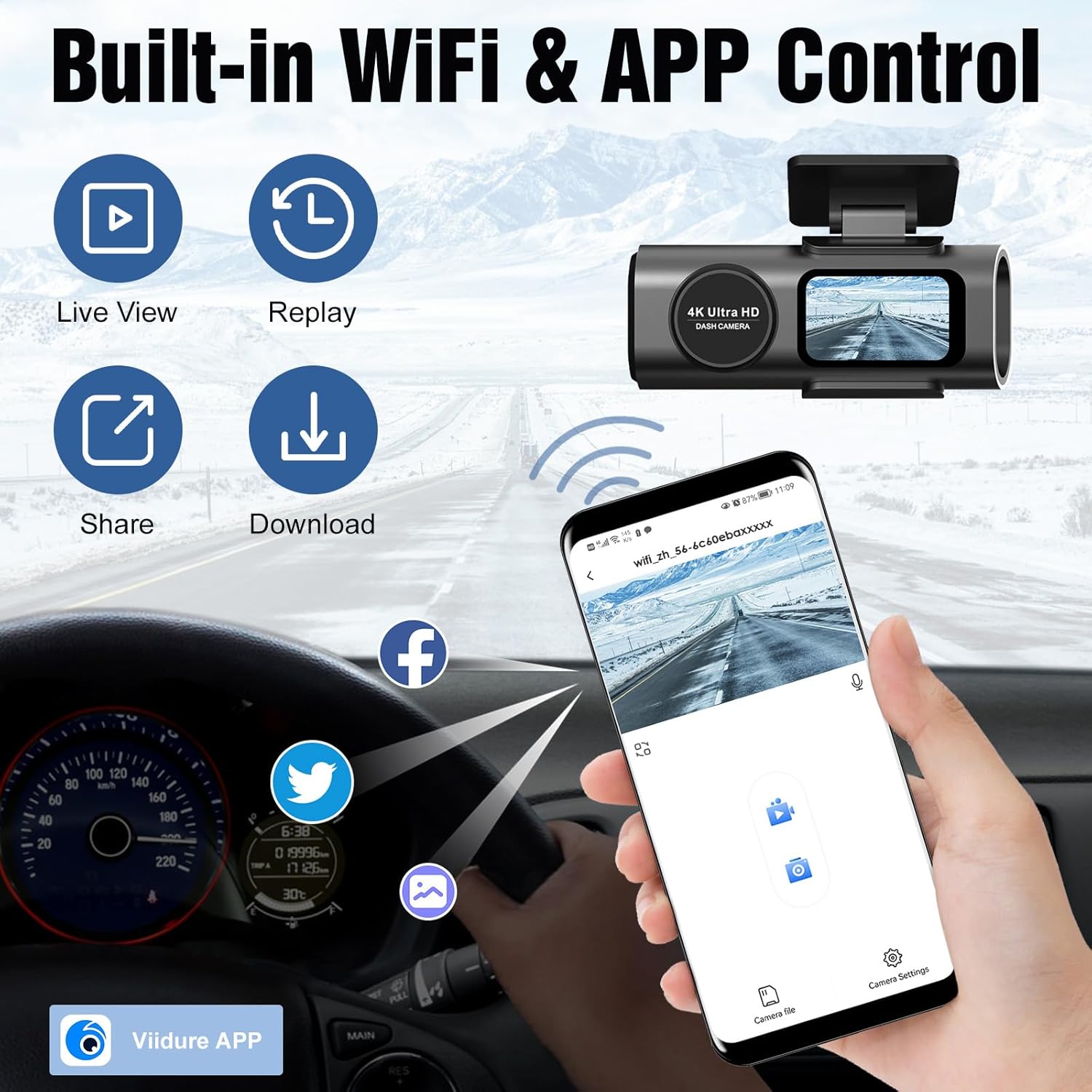 Pentru a utiliza camera auto DVR , este necesara introducerea unui card de memorie, cu o capacitate maxima acceptata de 256 GB. Clasa de viteza video recomandata este V60, aceasta viteza este ideala pentru inregistrari video de inalta rezolutie, cum ar fi 4K si 8K, asigurandu-se ca datele sunt scrise rapid si eficient, fara intreruperi sau pierderi de cadre. Ulterior, trebuie sa instalati aplicatia Viidure, disponibila in magazinul de aplicatii, sau scanati codul QR din manualul de instructiuni. Urmati pasii din manualul de utilizare pentru a conecta aplicatia si a seta parametrii camerei, cum ar fi modificarea parolei WiFi, inregistrarea audio, afisarea timpului, durata ciclului de inregistrare in bucla, sensibilitatea la coliziune si rezolutia video. Pentru a descarca un fisier video dorit, accesati aplicatia camerei auto, selectati videoclipul si apasati butonul de descarcare, situat in coltul din stanga jos al ecranului.