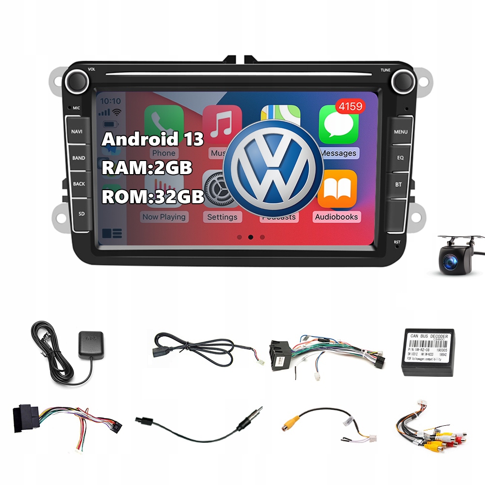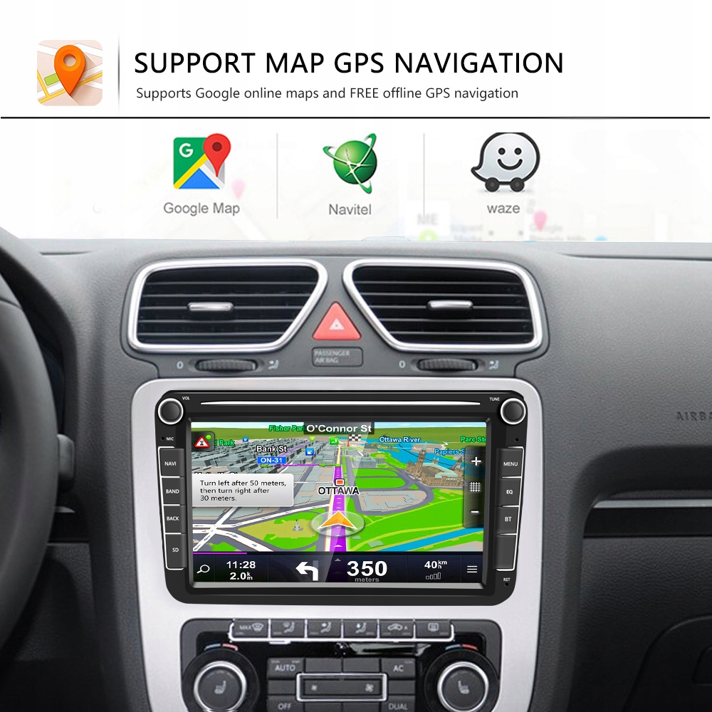 Navigatie cu VW Golf Polo Tiguan Passat B7 B6 SEAT Leon Skoda Octavia, Android 13, 2GB RAM 32 GB ROM, Ecran de 8 Inch