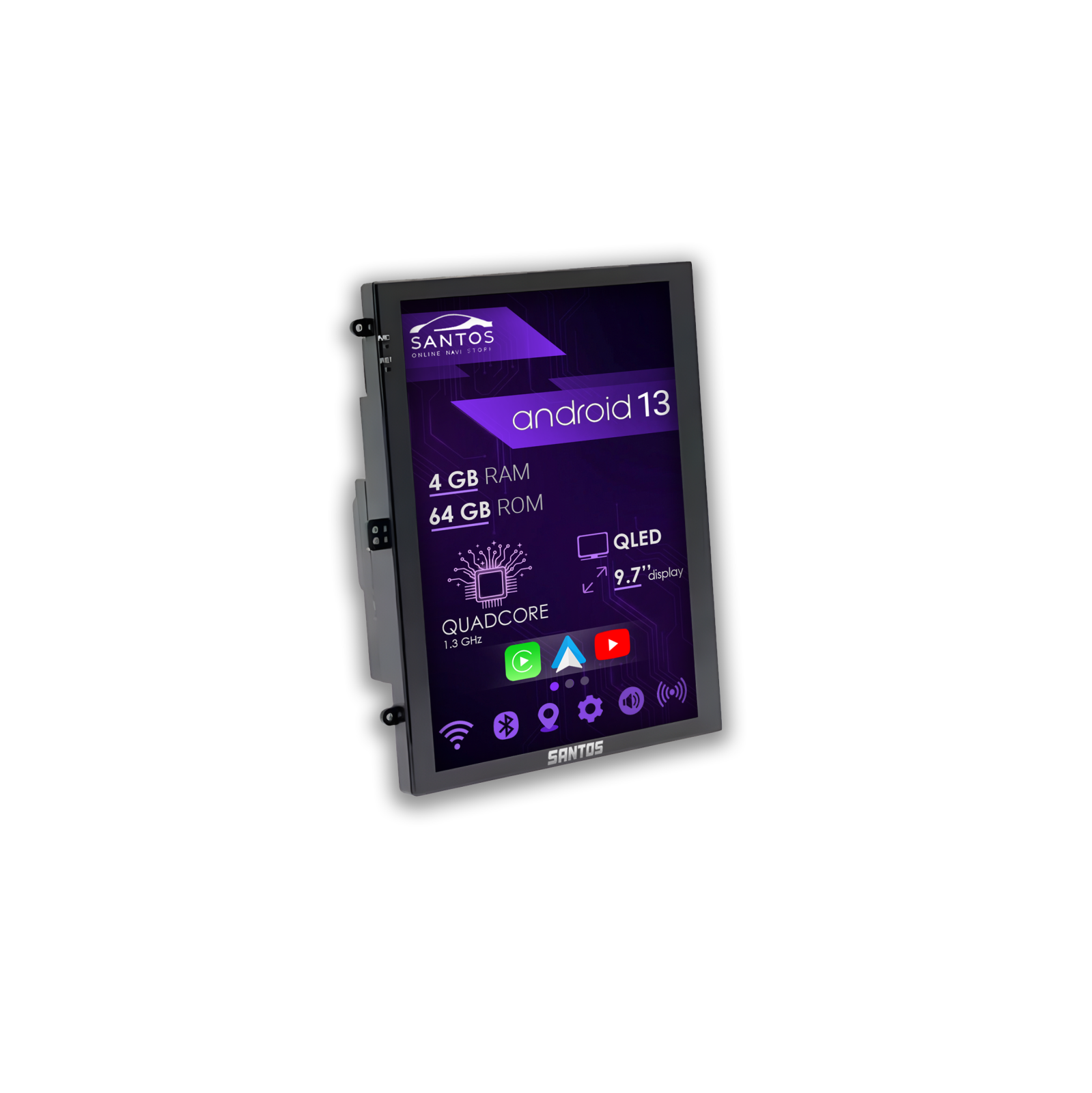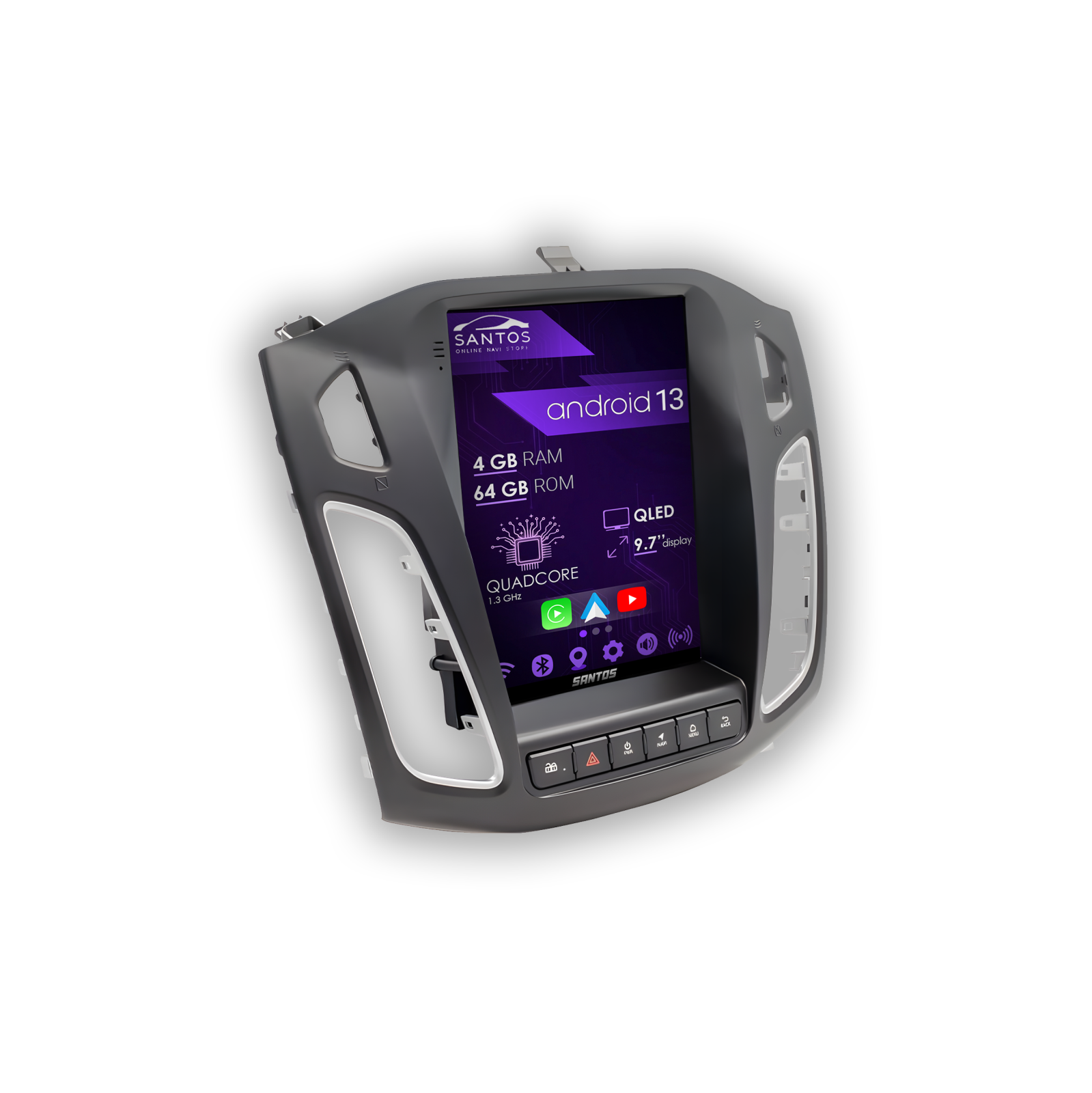 Această navigație auto cu Android 13 este o soluție echilibrată pentru upgrade multimedia, cu funcții esențiale și stabilitate bună în utilizare zilnică. Rulează pe un procesor Quad Core ARM A7 la 1.3 GHz, suficient pentru aplicații de navigație, muzică și funcții smart de bază. Memoria de 4GB RAM și 64GB stocare îți permite instalarea aplicațiilor uzuale și hărți offline fără probleme.