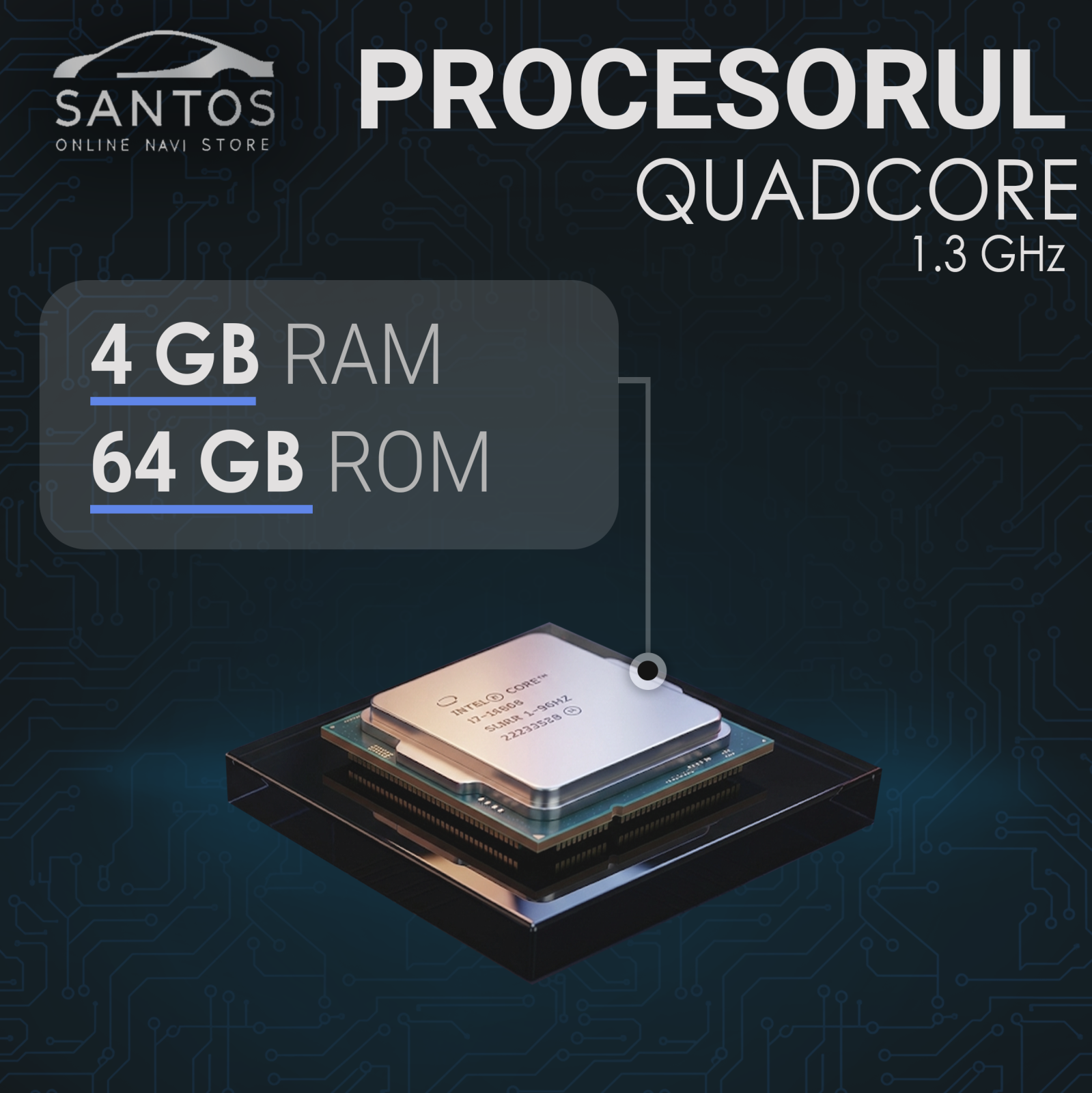 Aceasta navigatie auto Android 13 iti ofera functii moderne si compatibilitate buna pentru utilizare zilnica. Functioneaza stabil datorita procesorului Quad Core ARM A7 la 1.3 GHz si memoriei de 4GB RAM. Spatiul de stocare de 64GB iti permite sa instalezi aplicatii, harti offline si fisiere media.