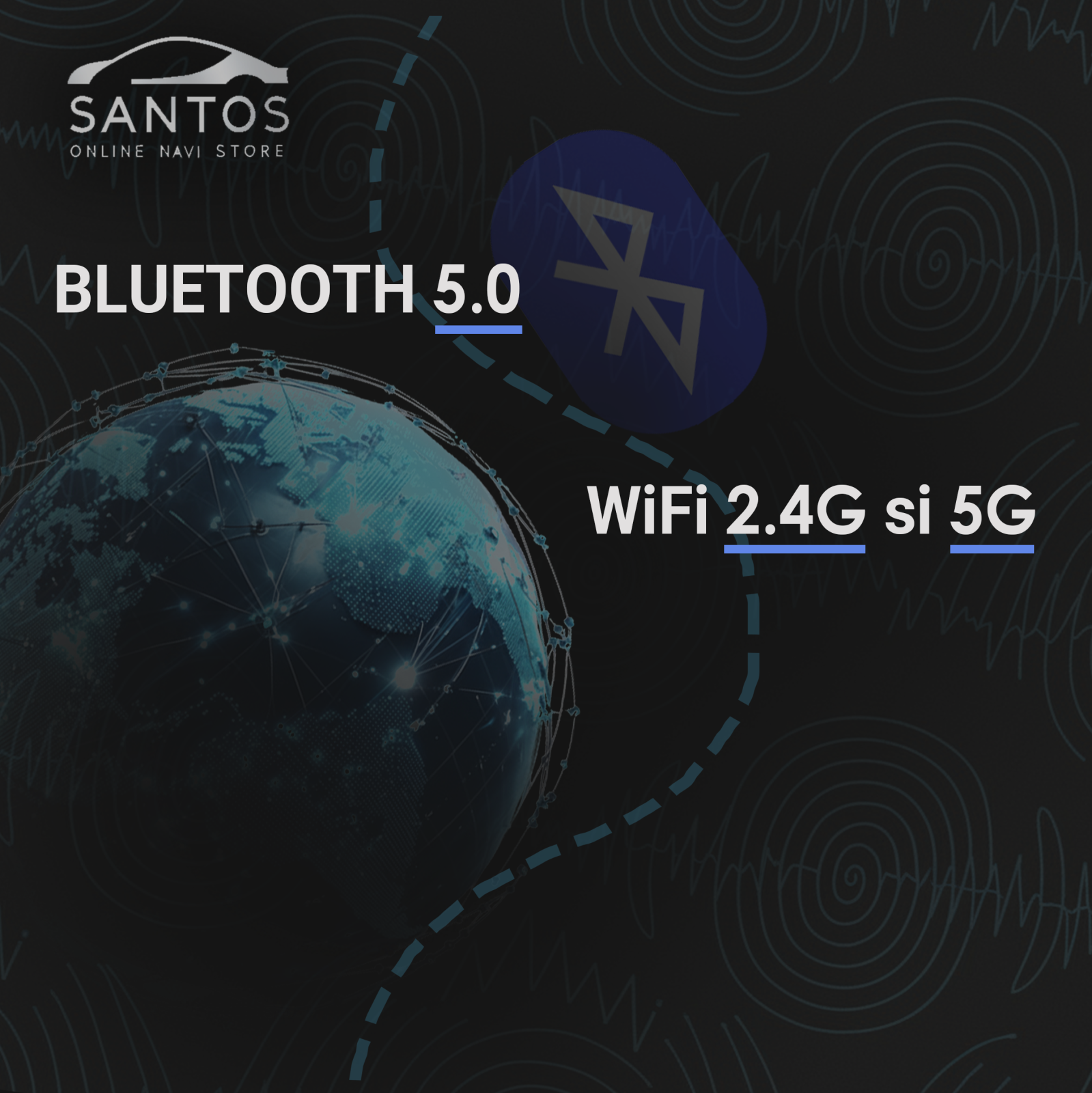 Navigatia GPS integrata permite folosirea aplicatiilor online si offline. Conectivitatea WiFi 2.4 GHz ofera acces rapid la internet pentru aplicatii si actualizari. Modulul Bluetooth 4.2 permite apeluri clare si redare audio.