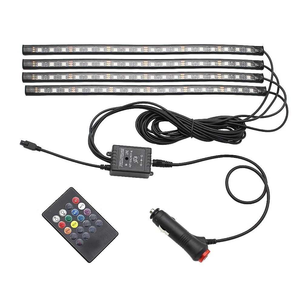 Kit 4 Lumini Ambientale RGB cu telecomanda, 12V, 18 LED, 32 cm Caracteristici: 18 leduri RGB pe fiecare din cele 4 module Lungime modul de 32 cm Alimentare la 12V Pachetul contine: - 4 lampi cu led - unitate de control - telecomanda - mufa bricheta (poate fi inlaturata daca se doreste sa se lege direct)