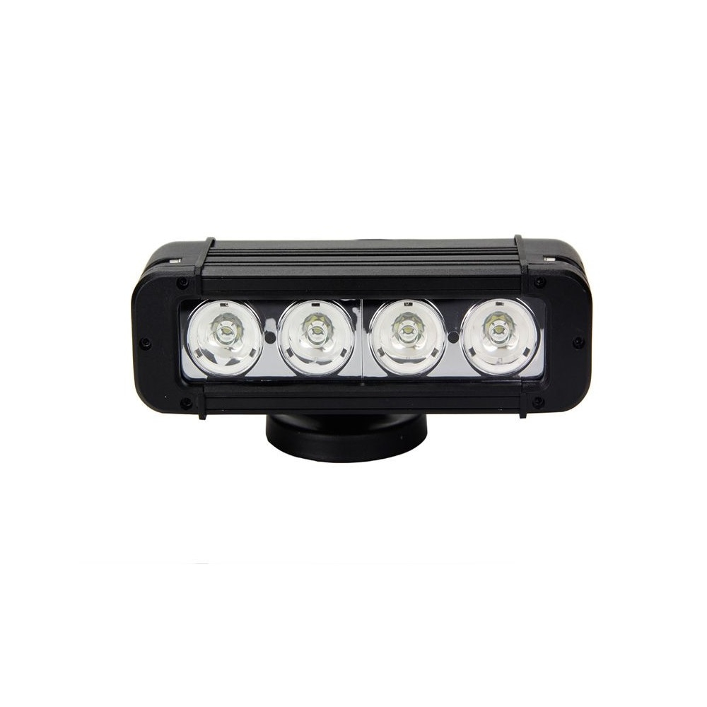 Specificatii produs: Putere: 40W Luminozitate: 3400 lumeni Numar leduri: 4x10W high intensity CREE XBD LEDs Tensiunea de lucru: 9-32V Clasa protectie: IP 67 Material: Aliaj Aluminiu Culoare corp: Negru Material lentila: Policarbonat Bracketi montaj: Duraluminiu Unghi lumina: Spot Beam 12 grade pentru distanta Lungime: 8 inch (cca 20 cm) Descriere produs: Proiector LED auto pentru Off Road, vanatoare, pescuit, utilaje, etc Pentru utilizare la autoturisme, utilaje, camioane, ambarcatiuni Gama larga de utilizar: autoturisme, utilaje, camioane, ambarcatiuni si alte Diferite dimensiuni pentru instalare in diverse locuri Carcasa din duraluminiu rezistenta la socuri Protectie la apa si anticoroziune: poate fi utilizat in ploaie si in medii grele de lucru (praf, noroi, etc) Observatie: baza metalica circulara din fotografie nu este inclusa in pachetul produsului. Este utilizata doar pentru fotografierea produsului. Produsul se fixeaza cu ajutorul sitemelor metalice cu surub care pot fi vazute in fotografiile secundare ale produsului.