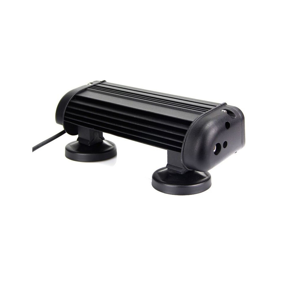 Specificatii produs: Putere: 60W Luminozitate: 5100 lumeni Numar leduri: 6x10W high intensity CREE XBD LEDs Tensiunea de lucru: 9-32V Clasa protectie: IP 67 Material: Aliaj Aluminiu Culoare corp: Negru Material lentila: Policarbonat Bracketi montaj: Duraluminiu Unghi lumina: Combo Beam (flood beam 60° pe laterale si spot beam 12° pe centru pentru utilizare atat pentru distanta cat si pentru aproape) Lungime: 11 inch (cca 28 cm) Descriere produs: Proiector LED auto pentru Off Road, vanatoare, pescuit, utilaje, etc Pentru utilizare la autoturisme, utilaje, camioane, ambarcatiuni Gama larga de utilizar: autoturisme, utilaje, camioane, ambarcatiuni si alte Diferite dimensiuni pentru instalare in diverse locuri Carcasa din duraluminiu rezistenta la socuri Protectie la apa si anticoroziune: poate fi utilizat in ploaie si in medii grele de lucru (praf, noroi, etc) Observatie: baza metalica circulara din fotografie nu este inclusa in pachetul produsului. Este utilizata doar pentru fotografierea produsului. Produsul se fixeaza cu ajutorul sitemelor metalice cu surub care pot fi vazute in fotografiile secundare ale produsului.
