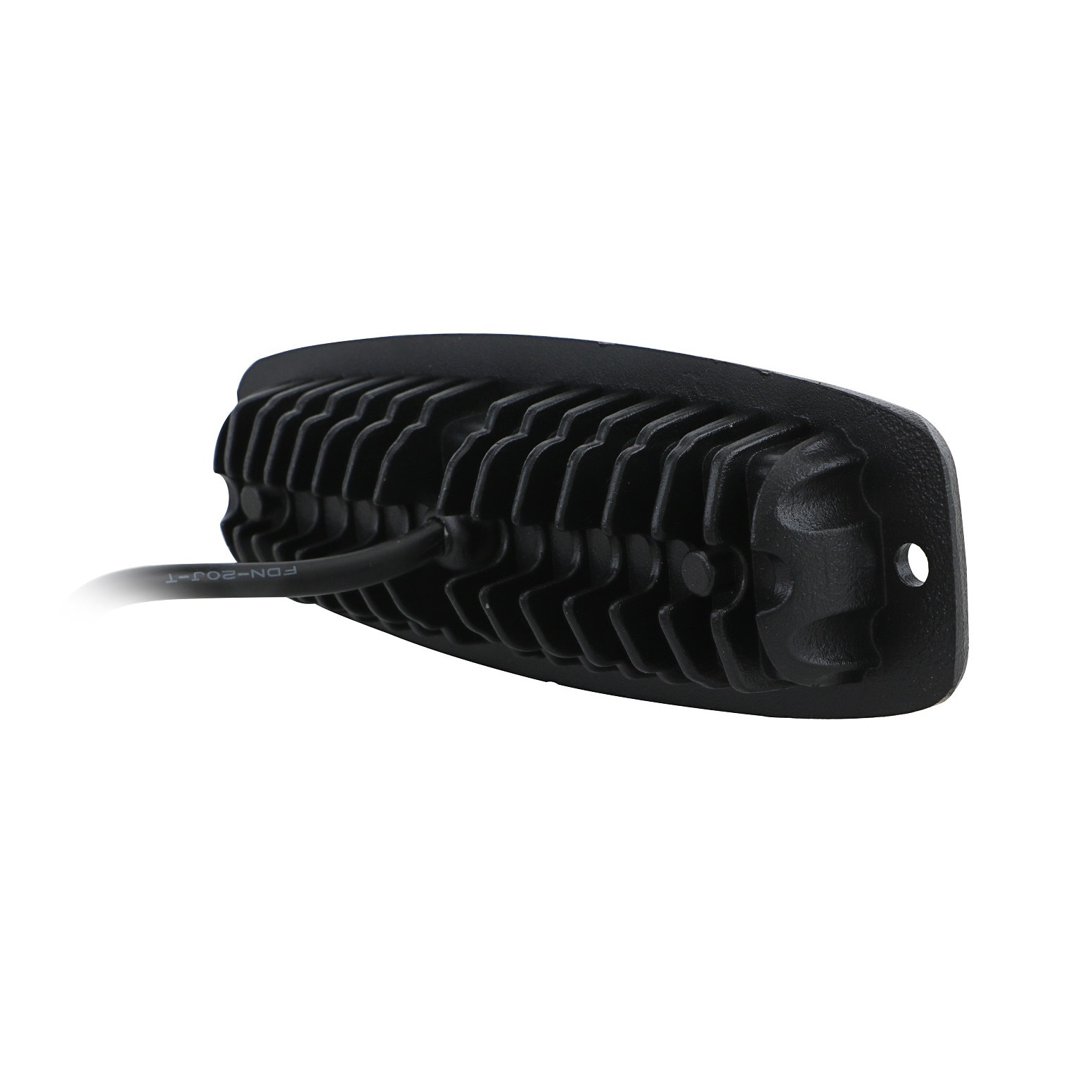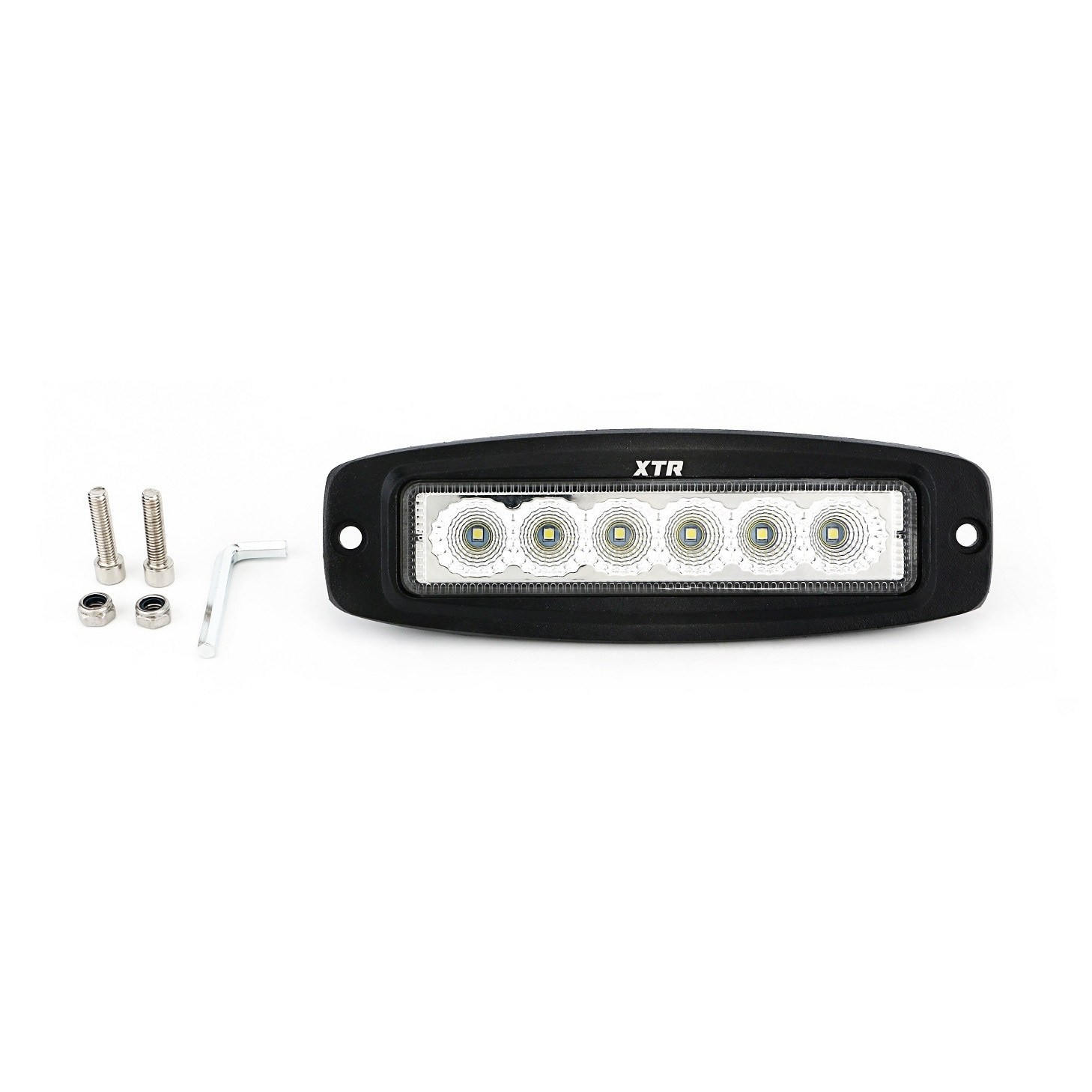 Proiector LED Auto Offroad 18W/12V-24V, 1320 Lumeni, Incastrabil, Flood Beam 60 Grade Specificatii produs: Putere: 18W Luminozitate: 1320 lumeni Numar leduri: 6x3W high intensity Epsitar LED Tensiunea de lucru: 10-30V Clasa protectie: IP 67 Amperaj: 1.4A@12V, 0.7A@24V Temperatura culoare lumina: 6000K Material: Aliaj Aluminiu Culoare corp: Negru Material lentila: Policarbonat Bracketi montaj: Otel inoxidabil Unghi lumina: Flood Beam 60° (pentru aproape/lucru) Dimensiuni: 195 x 62 x 45 mm Durata de viata: > 30.000 ore Descriere produs: Proiector LED auto pentru Off Road, vanatoare, pescuit, utilaje etc Pentru utilizare la autoturisme, utilaje, camioane, ambarcatiuni Gama larga de utilizare: autoturisme, utilaje, camioane, ambarcatiuni si alte. Diferite dimensiuni pentru instalare in diverse locuri Durata de viata foarte mare, de peste 30.000 de ore de functionare Carcasa din duraluminiu rezistenta la socuri Protectie la apa si anticoroziune: poate fi utilizat in ploaie si in medii grele de lucru (praf, noroi etc)