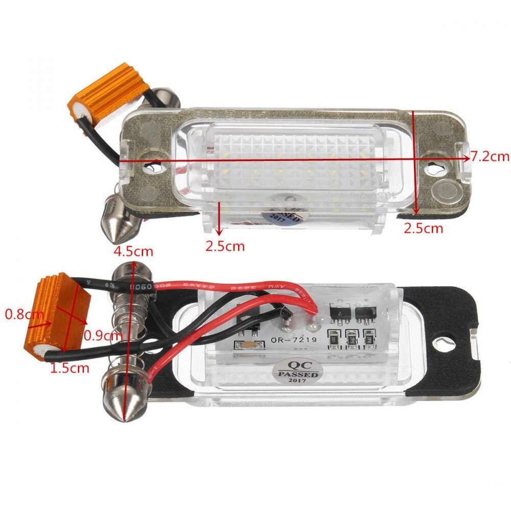 Schimbati rapid si usor culoarea galbena a lampilor de numar originale ale masinii. Lumina galbena a lampilor originale ale masinii este data de doua becuri halogen. Aceste becuri pot fi schimbate foarte simplu si usor cu noile lampi cu LED. Faceti o schimbare simpla dar de efect masinii personale! Specificatii: Temperatura culoare: 6000K Durata de viata: 50000 ore Nu dau eroare de bec ars (Canbus) Caracteristici: Lampa cu LEDuri smd Rezistenta la socuri si vibratii Consum redus de energie Instalare directa, fara alte modificari sau fire suplimentare Compatibilitate: *W/V251 R CLASS - 2006-2013 *X164 GL CLASS -2006-2017 *W164 ML CLASS - 2006-2009 fara facelift *Inainte de a comanda verificati daca lampa masinii dvs corespunde cu cea din fotografie