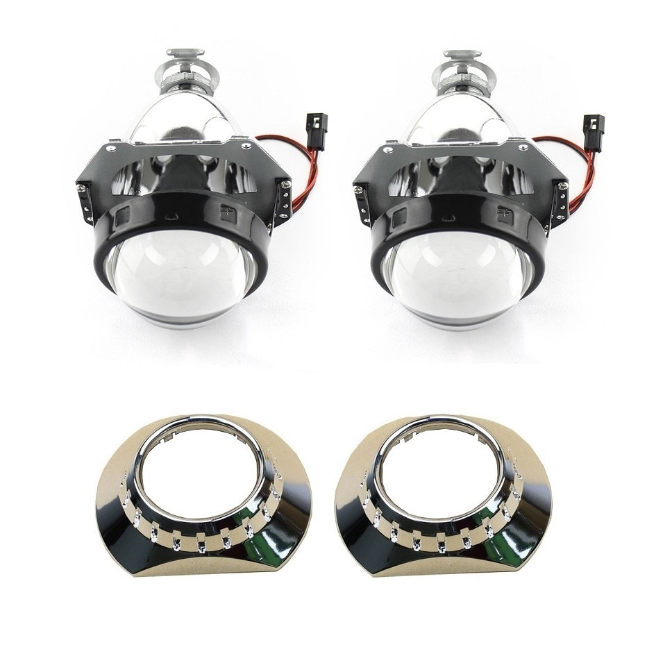 Set 2 lupe Bifazice Bixenon Biled Mini H1 3 inch, lungime 12cm, universale cu ornamente cromate ZKW BMW E46 incluse