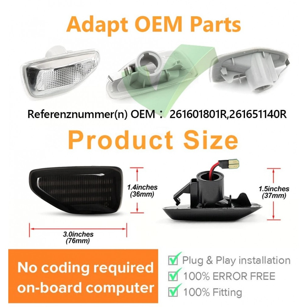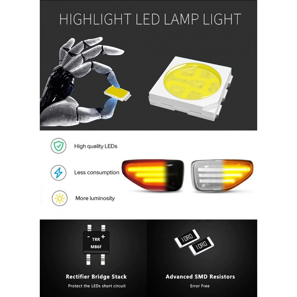 Set 2 Semnalizari Aripa LED dinamice cu sticla fumurie pentru Dacia Specificatii: Culoare lumina: portocalie Culoare lampa: fumurie (smoke) Durata de viata: 50000 ore Nu dau eroare de bec ars (Canbus) Dinamice (Secventiale) Caracteristici: Lampa cu LEDuri smd Rezistenta la socuri si vibratii Consum redus de energie Instalare directa, fara alte modificari sau fire suplimentare Compatibilitate: Dacia Duster 2 incepand cu 2018 Dacia Logan 2 incepand cu 2012 Dacia Sandero 2 incepand cu 2012