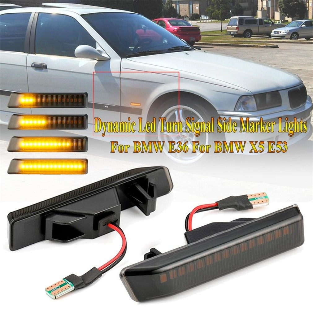 Set 2 Semnalizari Aripa LED dinamice secventiale cu sticla fumurie pentru BMW Specificatii: Durata de viata: 50000 ore Nu dau eroare de bec ars (Canbus) Sticla fumurie Dinamice, secventiale Caracteristici: Lampa cu LEDuri smd Rezistenta la socuri si vibratii Consum redus de energie Instalare directa, fara alte modificari sau fire suplimentare Compatibilitate: X5 E53 - 1999-2006 Seria 3 E36 limuzina doar Facelift 1996-2000 (nu se potriveste la toate) Seria 3 E36 cabriolet doar Facelift 1996-2000 (nu se potriveste la toate) Seria 3 E36 compact doar Facelift 1996-2000 (nu se potriveste la toate) Seria 3 E36 coupe doar Facelift 1996-2000 (nu se potriveste la toate) Seria 3 E36 touring doar Facelift 1996-2000 (nu se potriveste la toate) *Pentru BMW E36 facelift sunt doua variante de lampi. Daca lampa nu arata ca cea din poze comandati cealalta varianta (cod produs: 703807) Continut Pachet: Semnalizari cu led (2 bucati) Fara eroare de bec ars