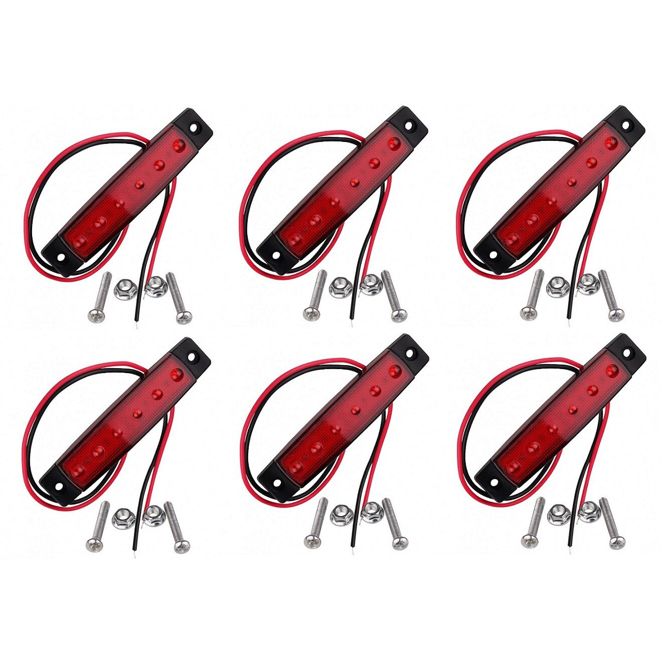 6X Lampi gabarit auto cu LED Caracteristici: Lampa de gabarit auto cu LED Tensiune alimentare: 12V Culoare lumina: Rosie Numar leduri: 6 Leduri Lungime: 95mm Latime: 20mm Grosime: 8mm Distanta dintre gaurile de prindere: 85mm
