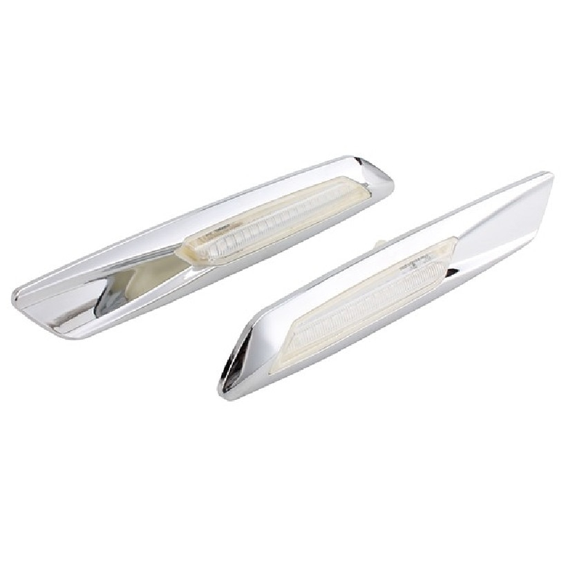 Lampi de aripa cu LED, cu ornamente cromate si sticla clara Specificatii: Durata de viata: 50000 ore Nu dau eroare de bec ars (Canbus) Caracteristici: Lampa cu LEDuri smd Rezistenta la socuri si vibratii Consum redus de energie Instalare directa, fara alte modificari sau fire suplimentare Compatibilitate: 1 series E81, E82, E87, E88 3 series E90, E91, E92, E93 5 series E60, E61, F10 Continut Pachet: 2 semnalizari cu led Fara eroare de bec ars Pretul este pe set